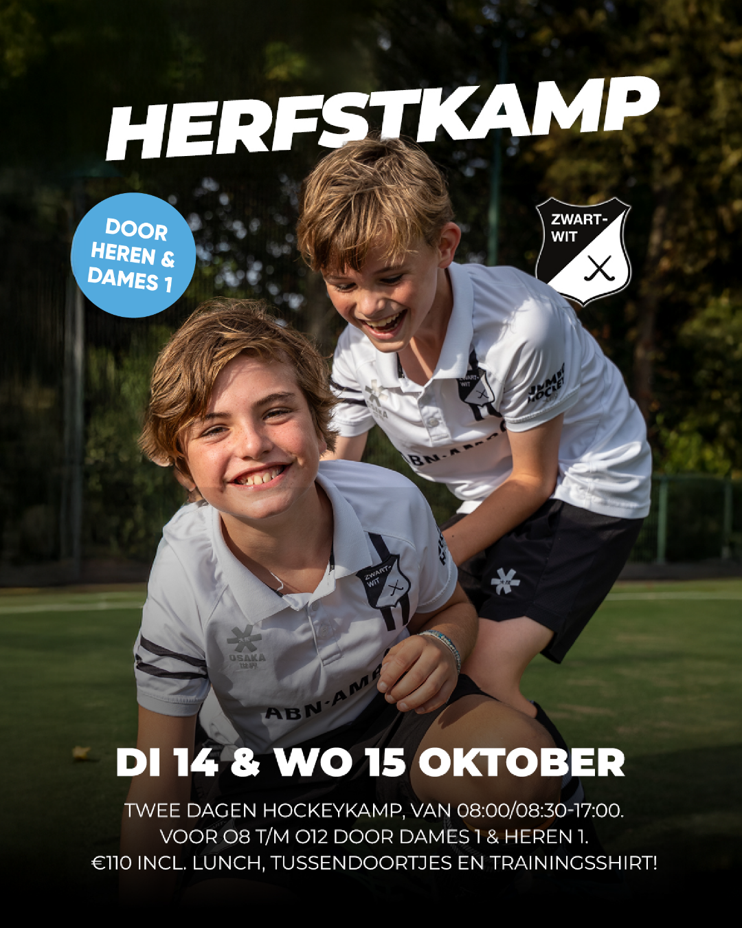 € 110,= voor twee super leuke dagen - een mix van hockey en fun - inclusief lunch, tussendoortjes en trainingsshirt.